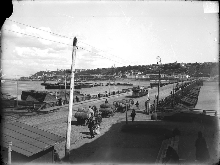 Общий вид на верхнюю часть города и плашкоутный мост. Нижний Новгород.