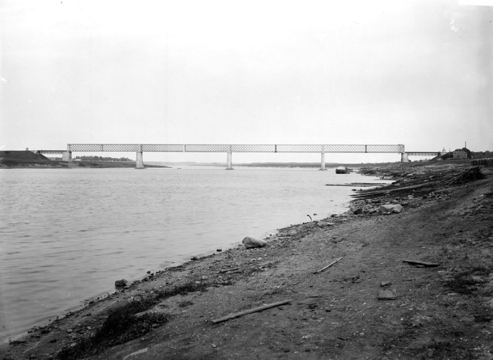 Общий вид моста через реку Волгу Рыбинско-Бологовской железной дороги. Мышкин.