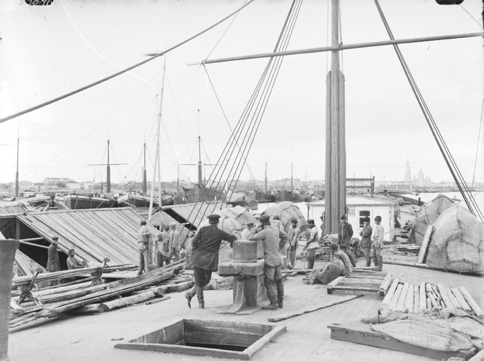 Караван судов. выгрузка. Рыбинск.