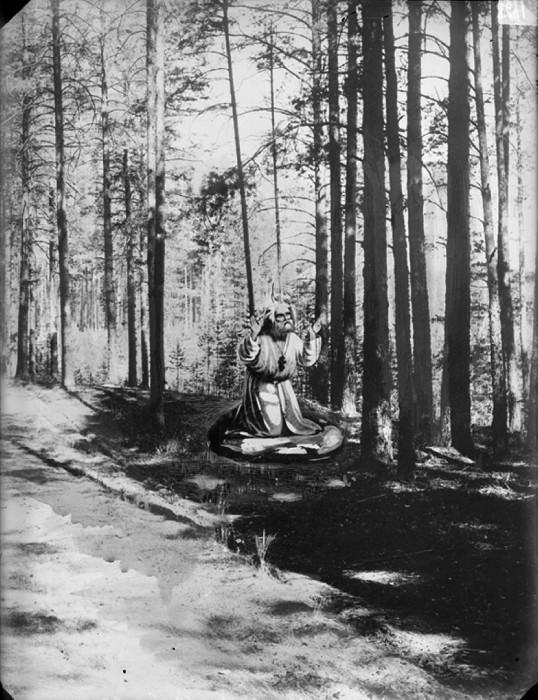 Саровский мужской монастырь. Серафим на камне. Фотомонтаж.