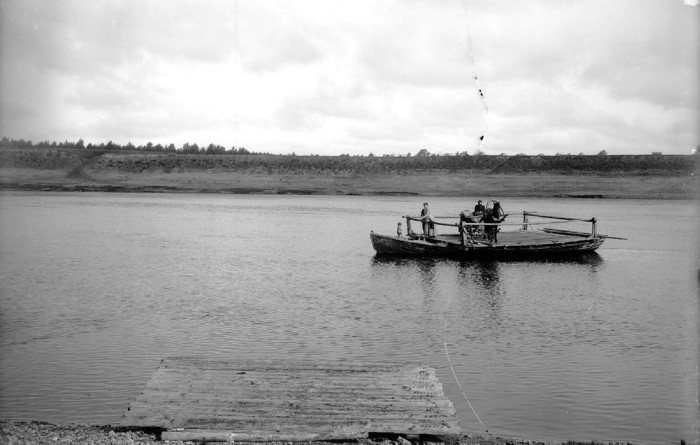 Паром на реке Волге у деревни Заднее поле.