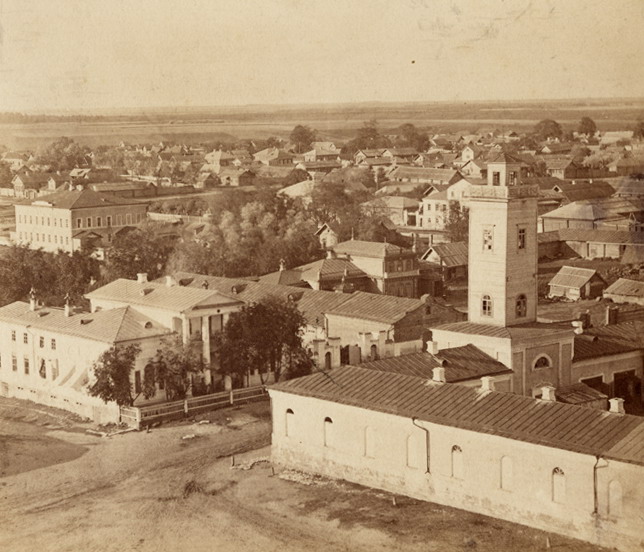 Касимов. Общий вид города. На первом плане - пожарная каланча, кутузка, слева - жилой дом Наставиных.