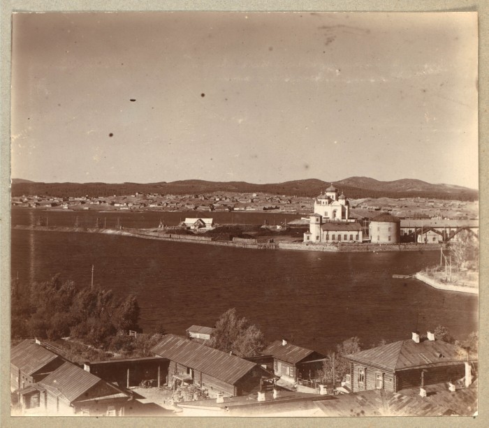Пермская губерния, Екатеринбургский уезд. Кыштым. Часть Кыштымского завода с церковью.