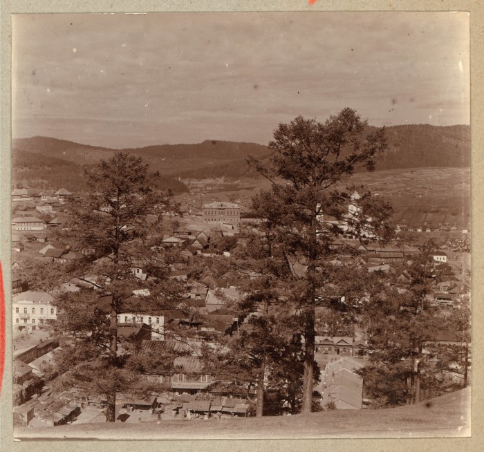 Уфимская губерния, г. Златоуст (уездн.). Этюд. Вид с Бутыловской горы на город сквозь деревья.