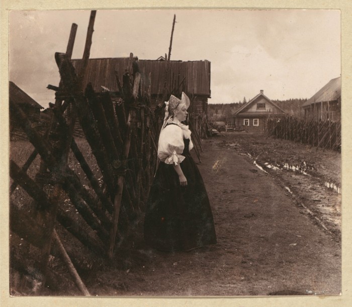 Олонецкая губерния. Старинный костюм крестьянки. Вид сбоку.