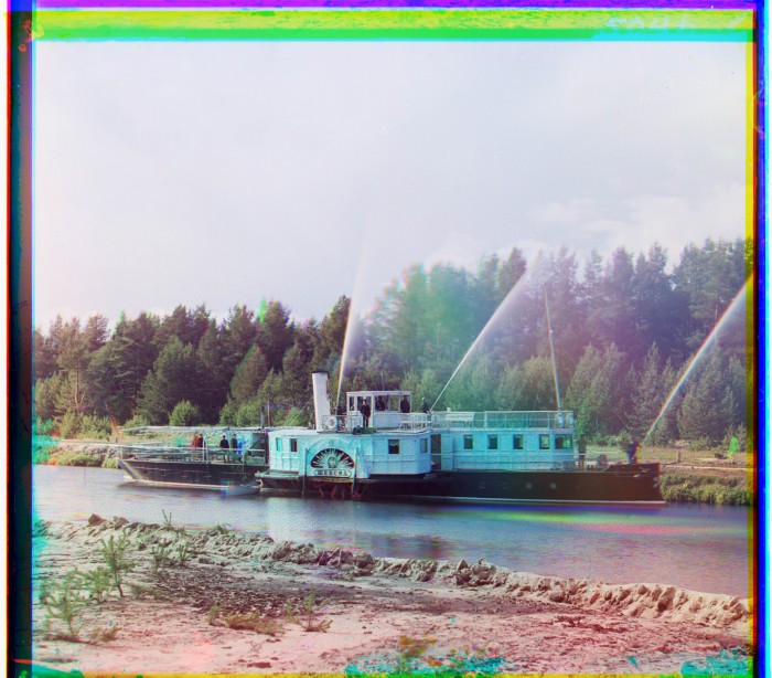 Пожарная тревога на пароходе "Шексна". Пароход "Шексна" предоставлен Прокудину-Горскому Министерством путей сообщения. Местоположение "Олонецкая губерния" предположительно.