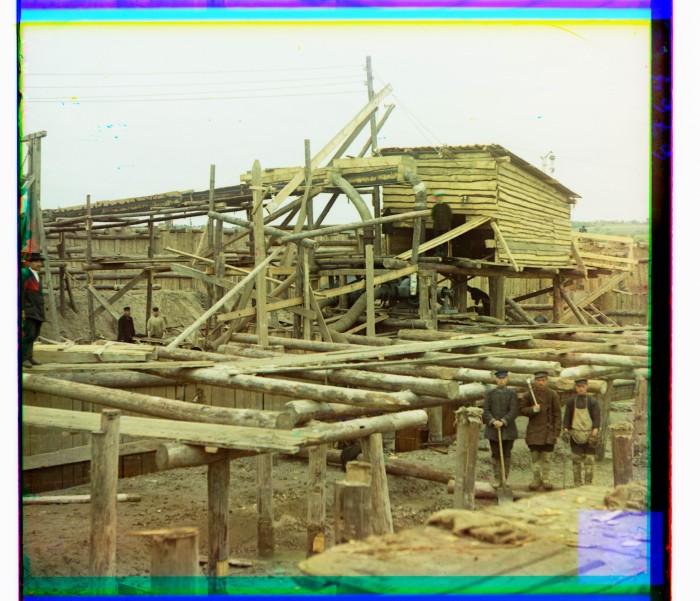 1912. Село Белоомут на реке Оке. Насосы для выкачивания воды. <p/> <p/> Фотография вошла в альбом «Российская Империя в цвете, 1909-1915, Владимирская и Ярославская губернии».