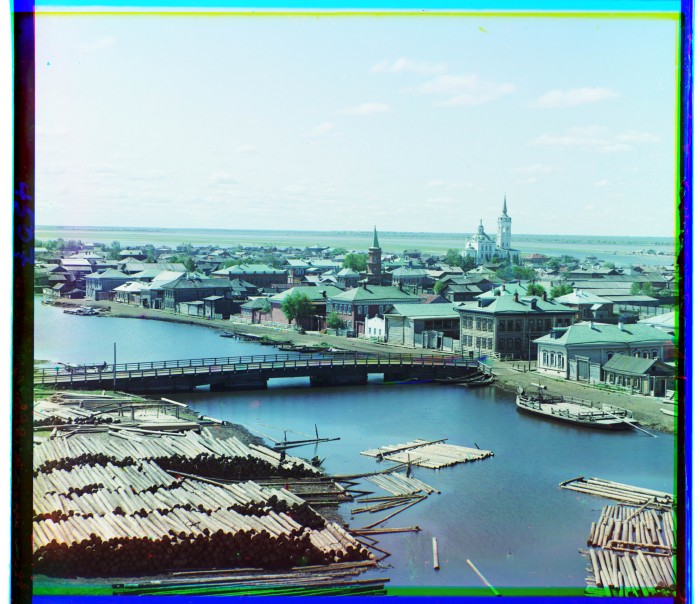 Вид на Тобольск с севера с колокольни Преображенской церкви. Тобольская губерния.