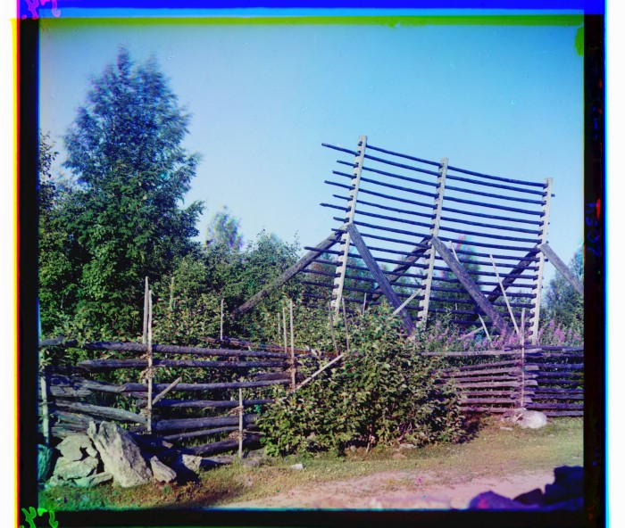 Вешала для сушки сена у реки Суны.