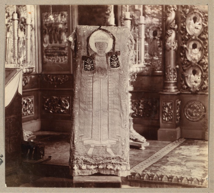 [1910]. Покров, шитый инокиней Марфой (Марией Нагих). Мария Федоровны Нагих (Нагая) – седьмая (пятая венчаная) жена царя Иоанна Васильевича Грозного, мать царевича Димитрия.