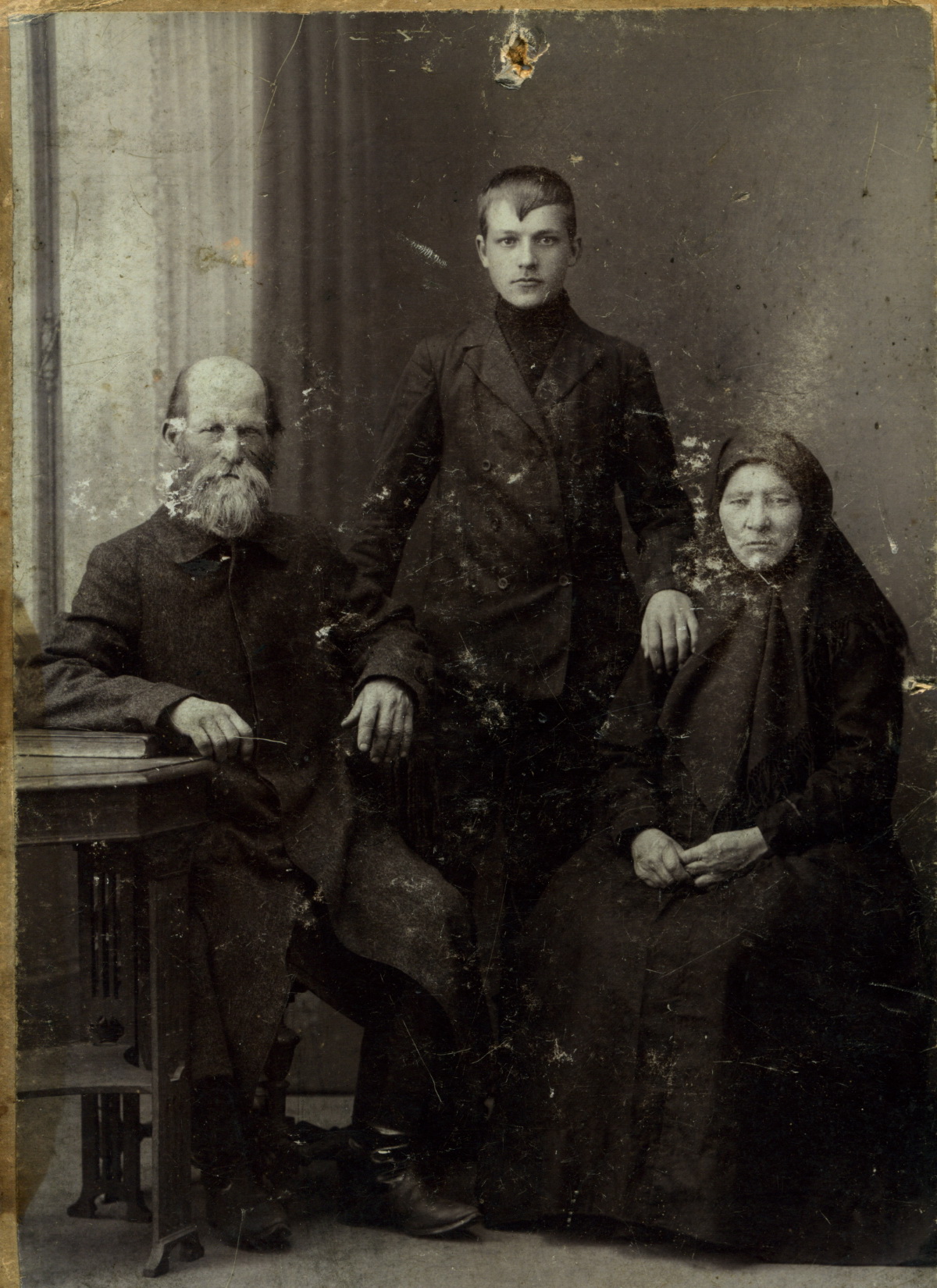 Фотоателье Н. Сажина, Муром. Алексей Кудряшов с женой и сыном Леонидом. 1909-1911.