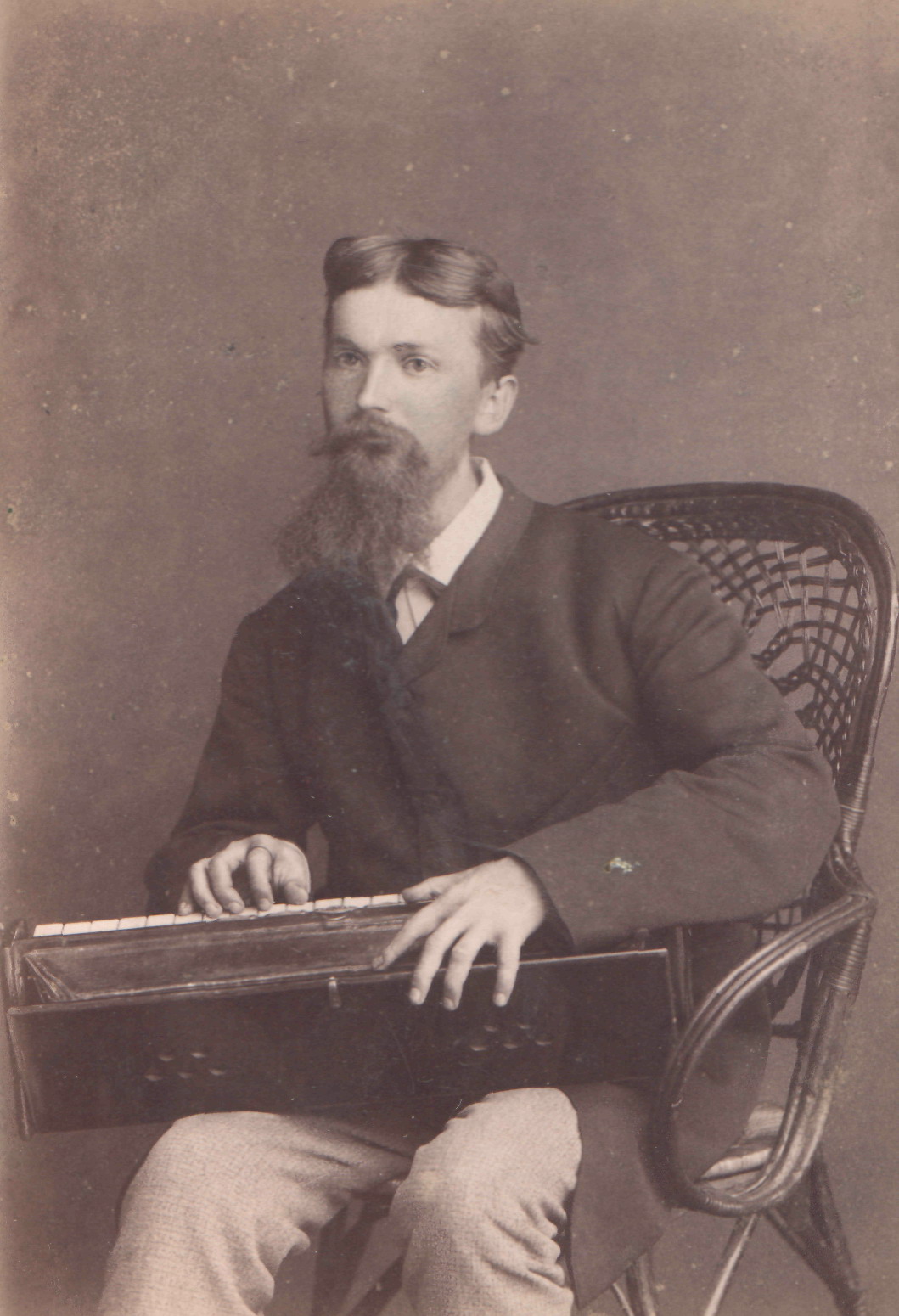 Неизвестный фотограф. Портрет мужчины с музыкальным инструментом. 1890-е гг.