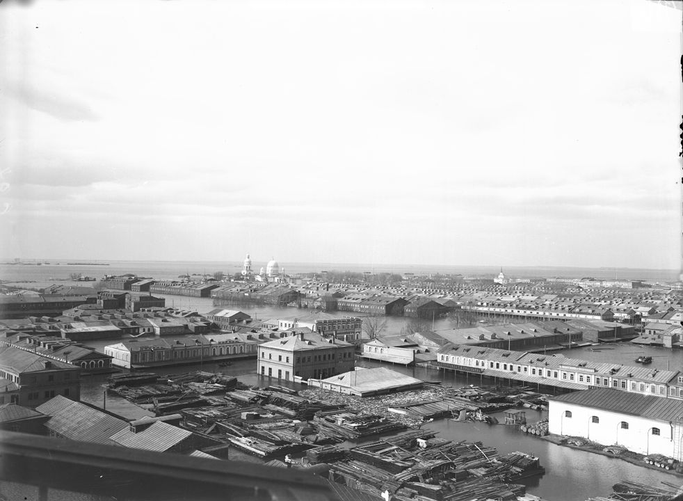 Вид на Нижегородскую ярмарку во время половодья. Нижний Новгород.