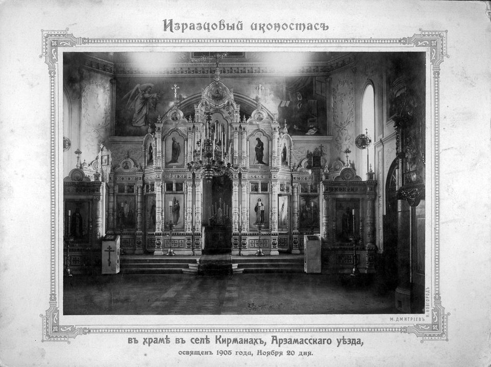 Иконостас в храме села Кирманы. Дата: к. XIX в. Место съемки: с. Кирманы, Нижегородская губерния Автор: М.П. Дмитриев