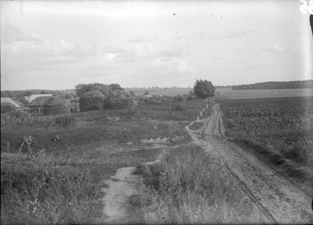 Вид с. Работки. Стога сена. Автор: В.А. Зевеке Место события: с. Работки Кстовского р-на Нижегородской области Дата: 1916 г.