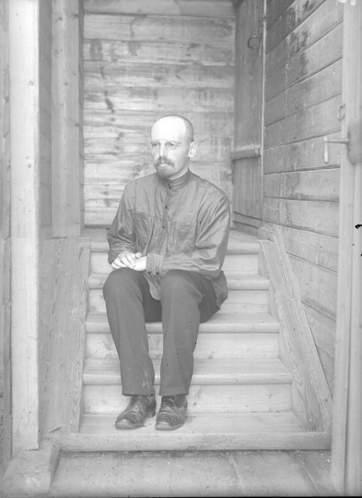 В.А. Зевеке на крыльце дома (сидит). Автор: В.А. Зевеке Место события: неизвестно Дата: 1915-1916 гг.