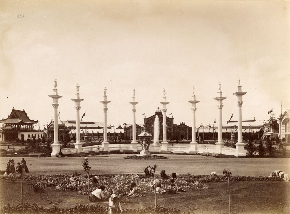 Всероссийская промышленная и художественная выставка 1896 года. Оформление площади у главного входа на выставку. Нижний Новгород.
