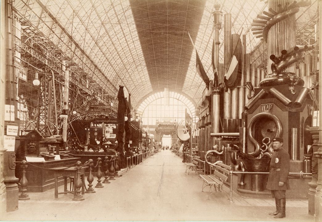 Всероссийская промышленная и художественная выставка 1896 года. Внутренний вид павильона машинного отдела.