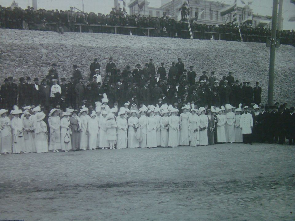Визит Николая II на празднование 300-летия дома Романовых в г. Н.Новгород. Группа дворянства и купечества при встрече Николая II.
