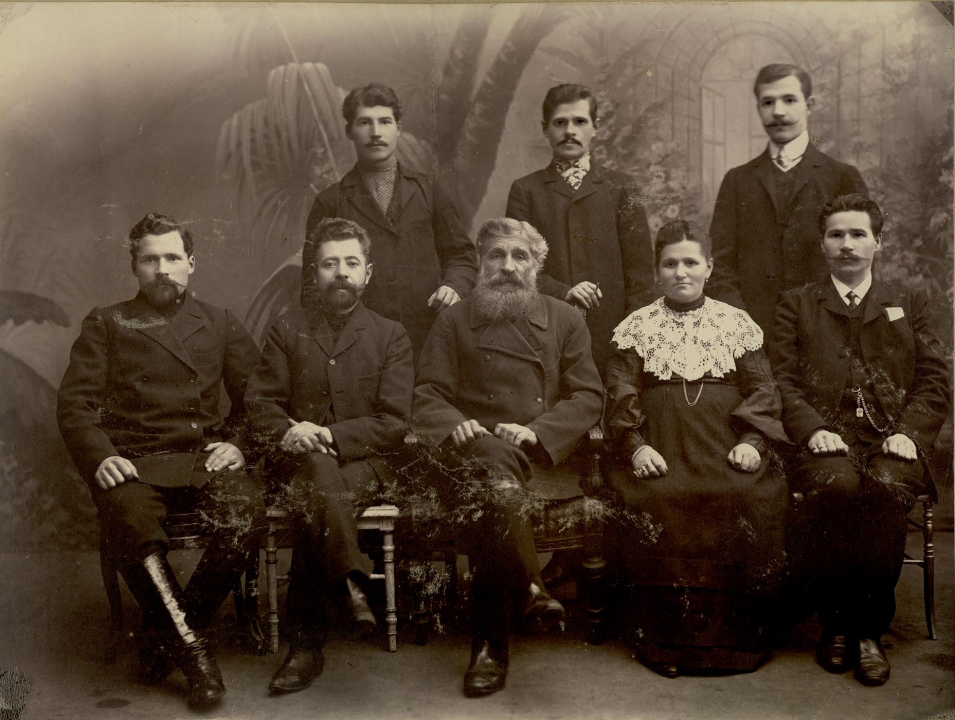 Наталия Павловна Дурдина с матерью и неизвестными женщинами у лестницы перед домом