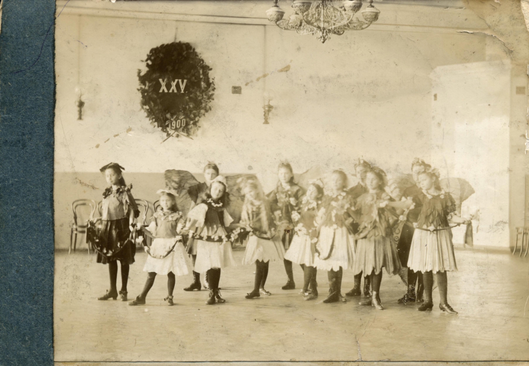 Группа девочек в актовом зале Мариинской женской гимназии