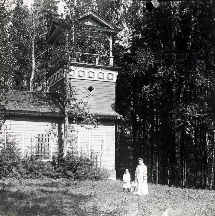 Наталия Павловна Дурдина с матерью и неизвестными женщинами у лестницы перед домом