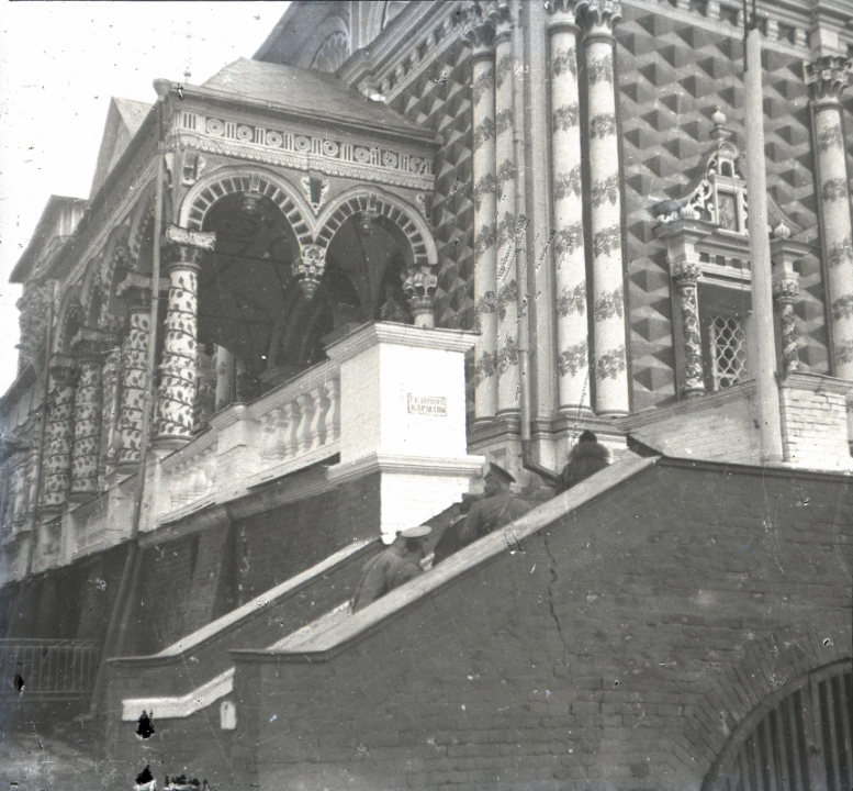 Наталия Павловна Дурдина с матерью и неизвестными женщинами у лестницы перед домом