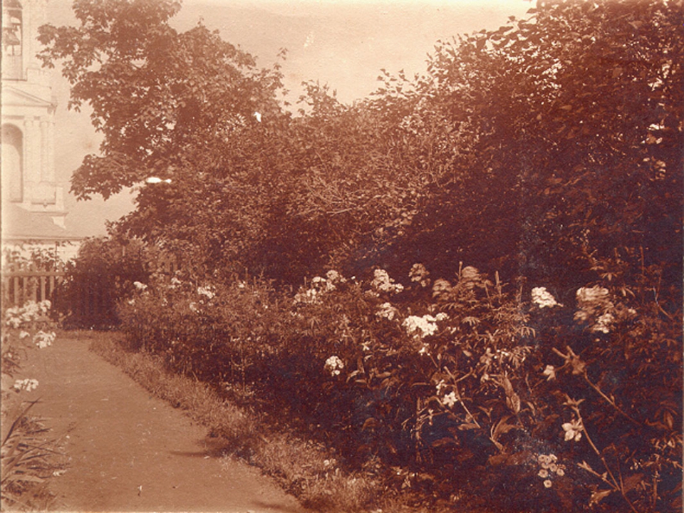 Наталия Павловна Дурдина с матерью и неизвестными женщинами у лестницы перед домом