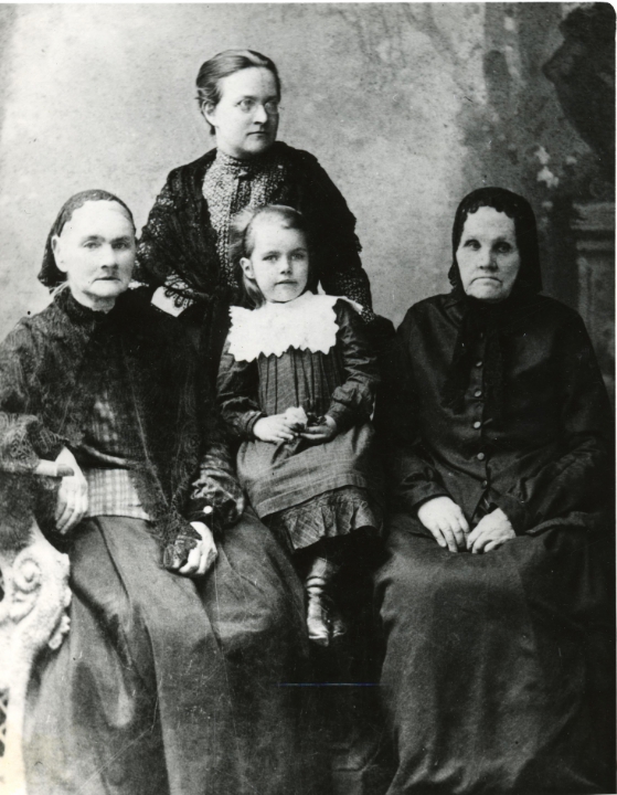 Наталия Павловна Дурдина с матерью и неизвестными женщинами у лестницы перед домом