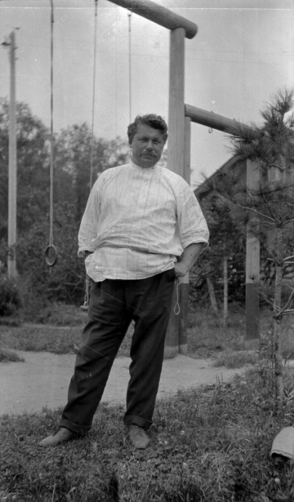 Судовладелец Петр Семенович Беляков у качели