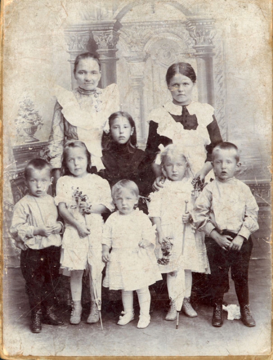 Дети Павла Николаевича и Полины Павловны Талантовых и их родственников с гувернантками.