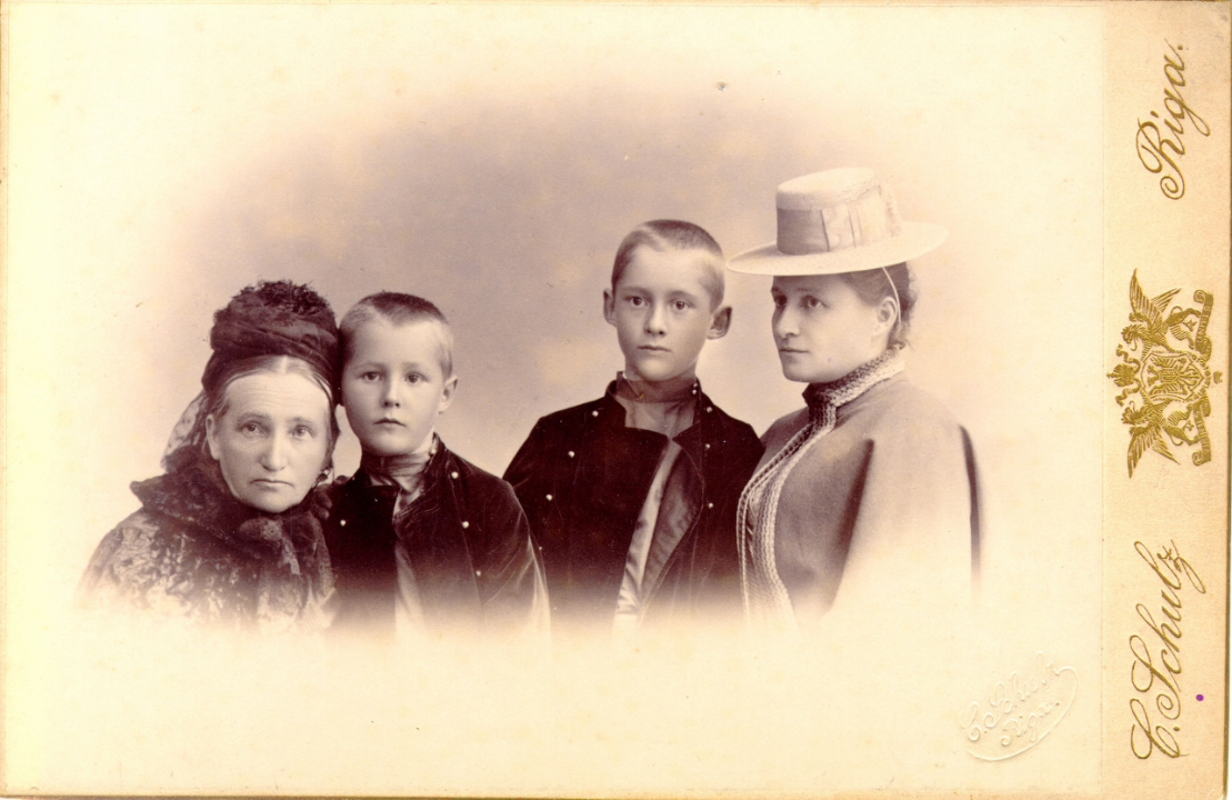 Наталия Павловна Дурдина с матерью и неизвестными женщинами у лестницы перед домом