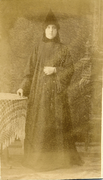 Наталия Павловна Дурдина с матерью и неизвестными женщинами у лестницы перед домом