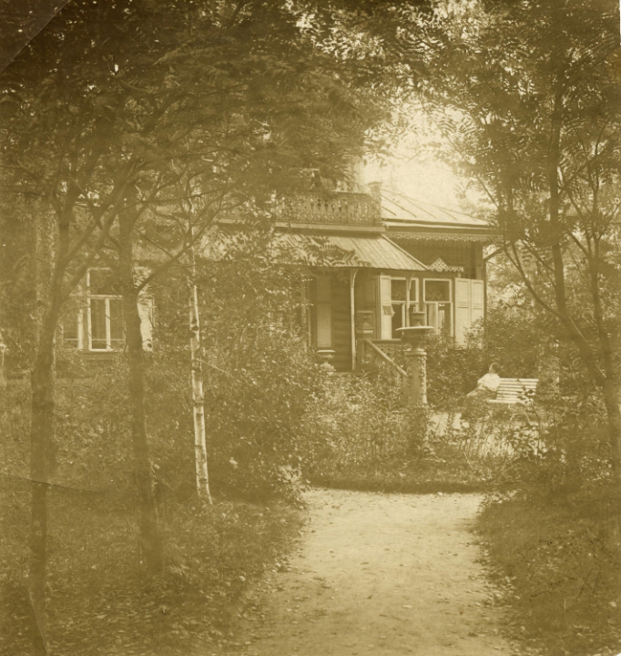 Наталия Павловна Дурдина с матерью и неизвестными женщинами у лестницы перед домом