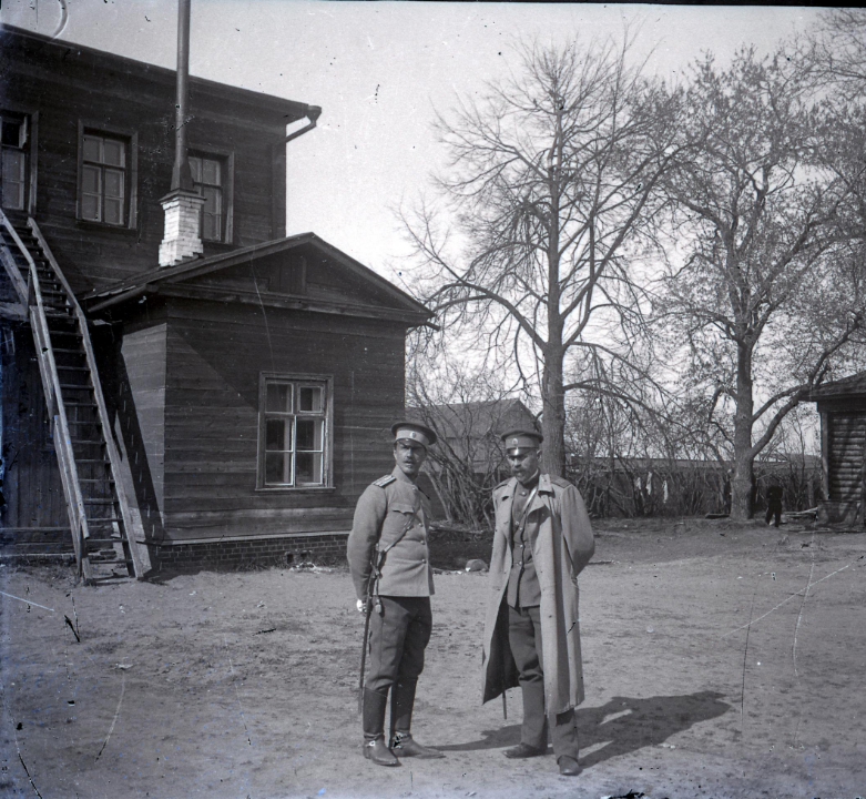 Наталия Павловна Дурдина с матерью и неизвестными женщинами у лестницы перед домом