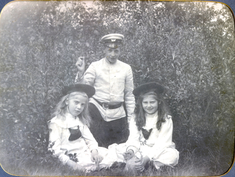 Варя и Маня Страшкевич с мальчиком-гимназистом (В.Галл?).
