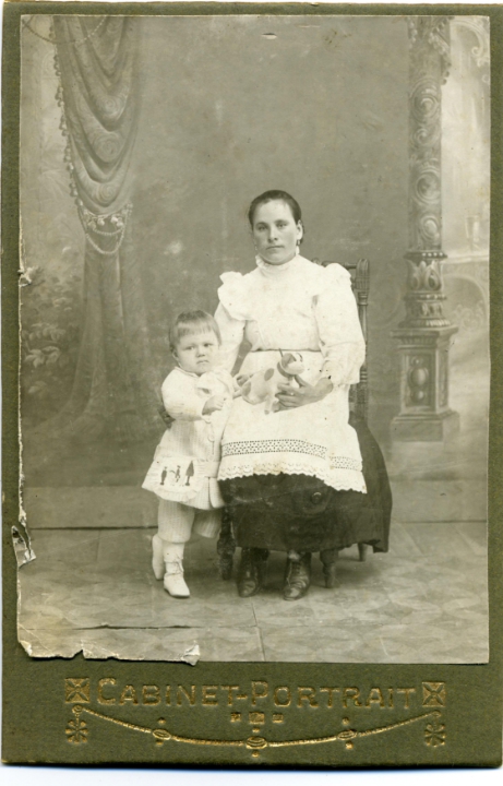 Наталия Павловна Дурдина с матерью и неизвестными женщинами у лестницы перед домом