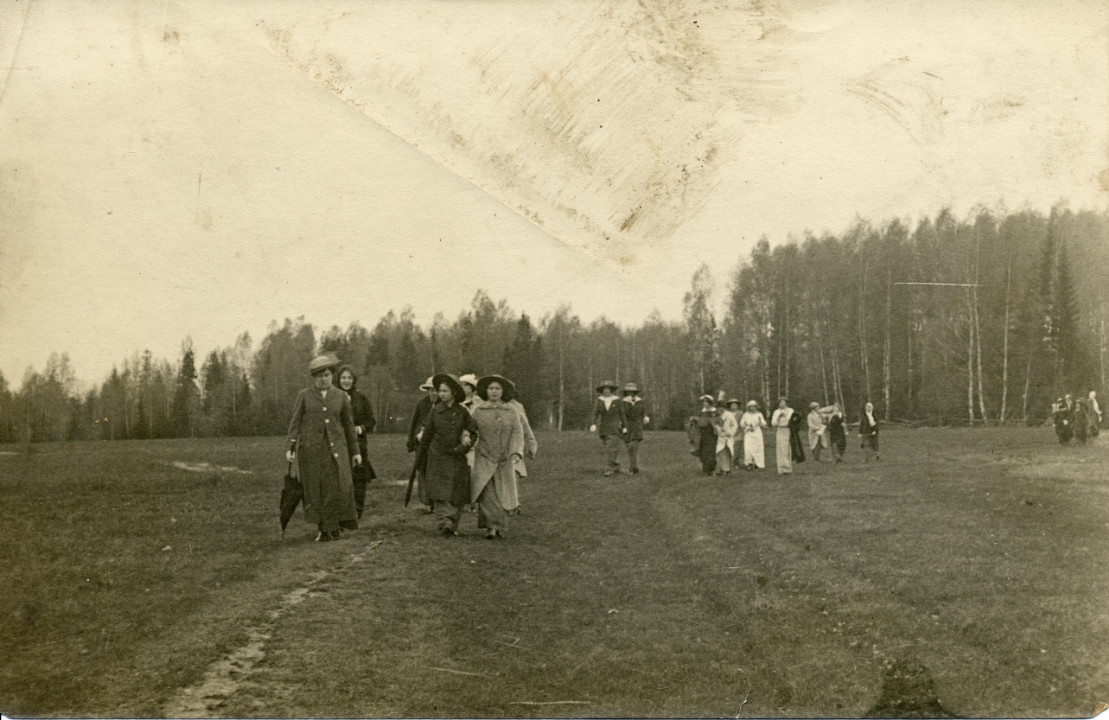 Ученицы Мариинской гимназии на прогулке в лесу