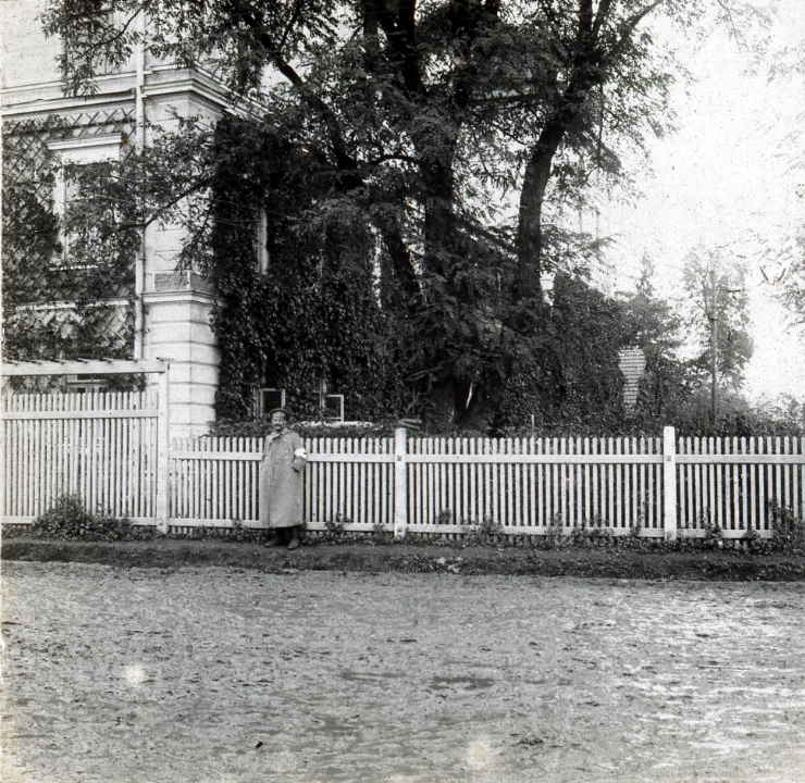 Наталия Павловна Дурдина с матерью и неизвестными женщинами у лестницы перед домом