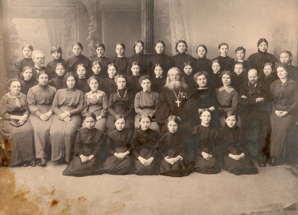 Наталия Павловна Дурдина с матерью и неизвестными женщинами у лестницы перед домом