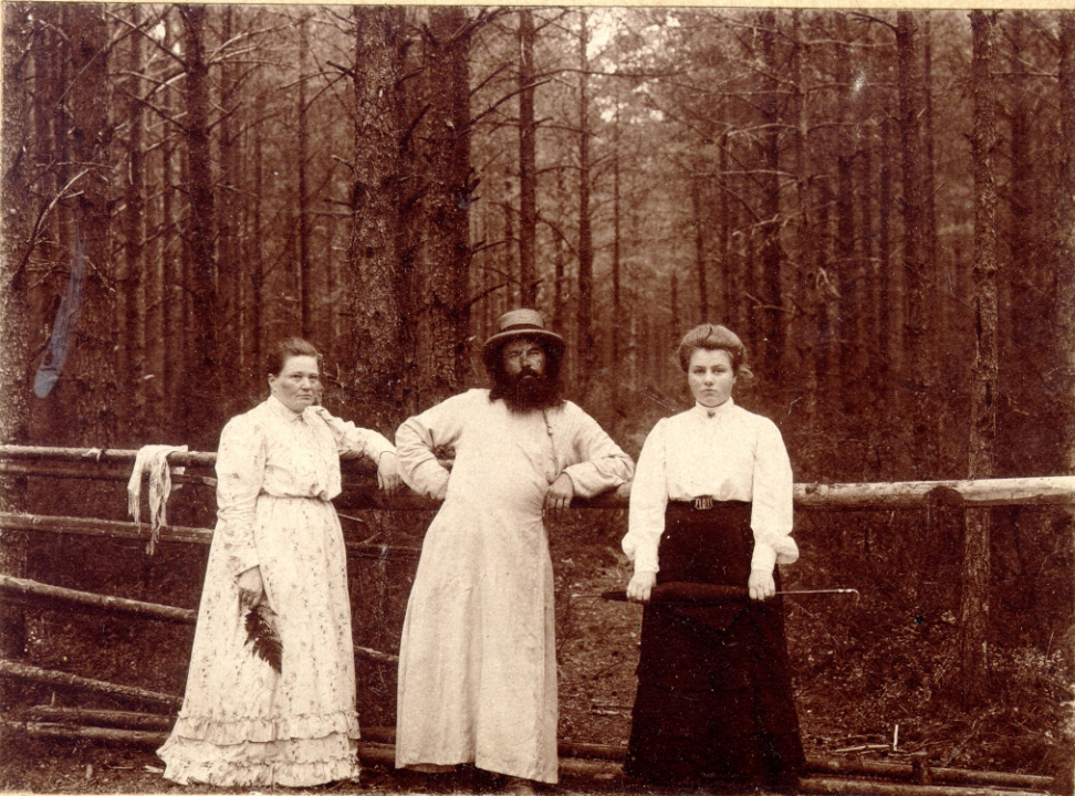 Мологский священник Федор Рудинский с женой и дочерью возле изгороди