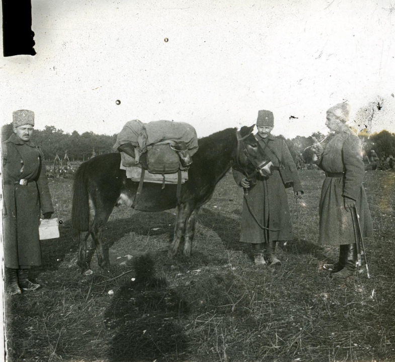 Наталия Павловна Дурдина с матерью и неизвестными женщинами у лестницы перед домом