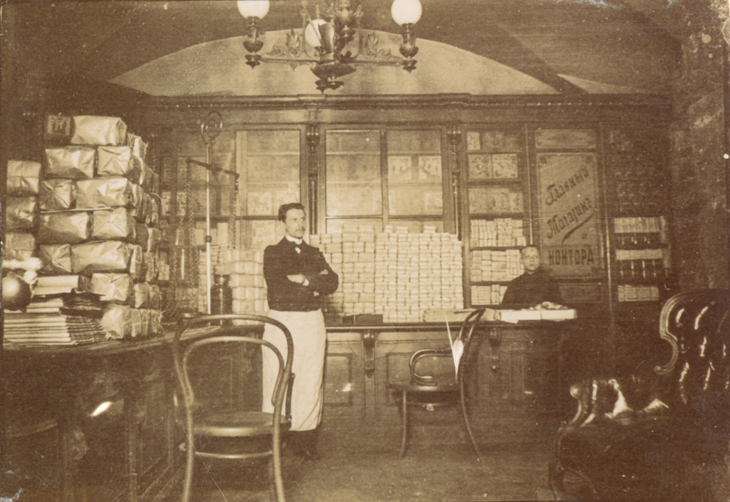 Двое служащих в торговой лавке