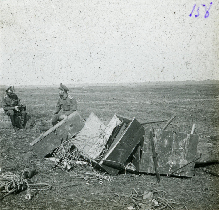 Двое военных у разбитой аппаратуры