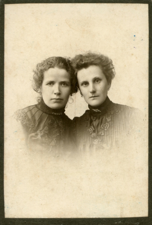 Наталия Павловна Дурдина с матерью и неизвестными женщинами у лестницы перед домом