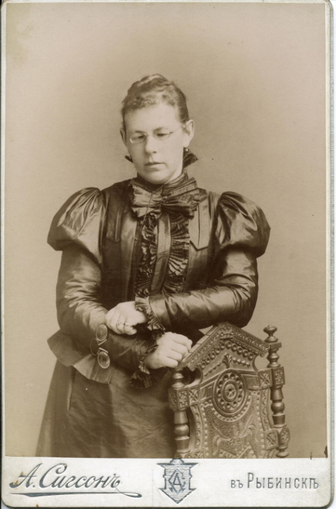 Наталия Павловна Дурдина с матерью и неизвестными женщинами у лестницы перед домом