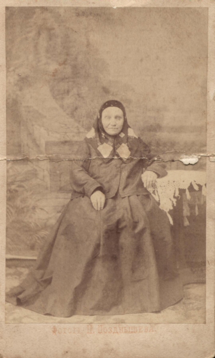Наталия Павловна Дурдина с матерью и неизвестными женщинами у лестницы перед домом