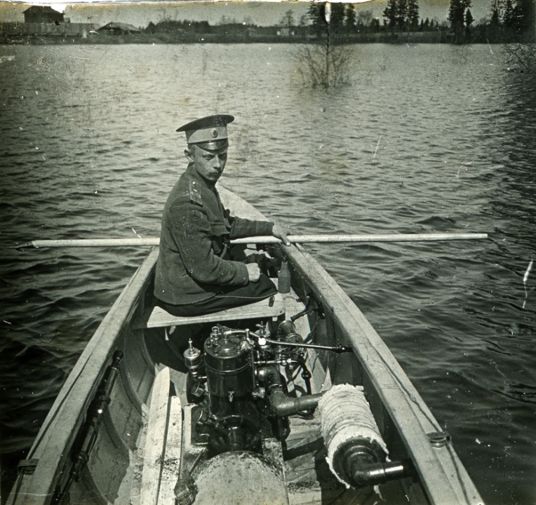 Военный в лодке на реке