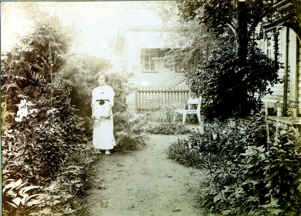 Наталия Павловна Дурдина с матерью и неизвестными женщинами у лестницы перед домом