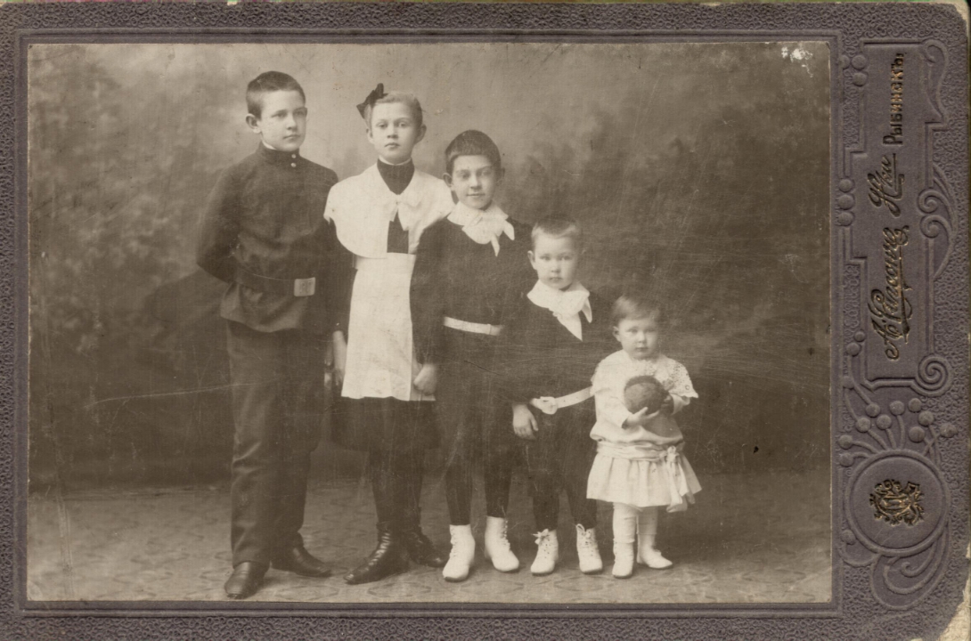 Наталия Павловна Дурдина с матерью и неизвестными женщинами у лестницы перед домом